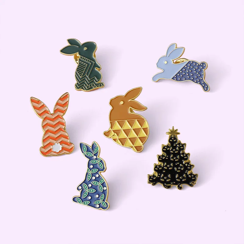 Милая брошь в виде животного, брошь в форме сосны, брошь в полоску, новинка, Серия животных, брошь в виде милого кролика из мультфильма