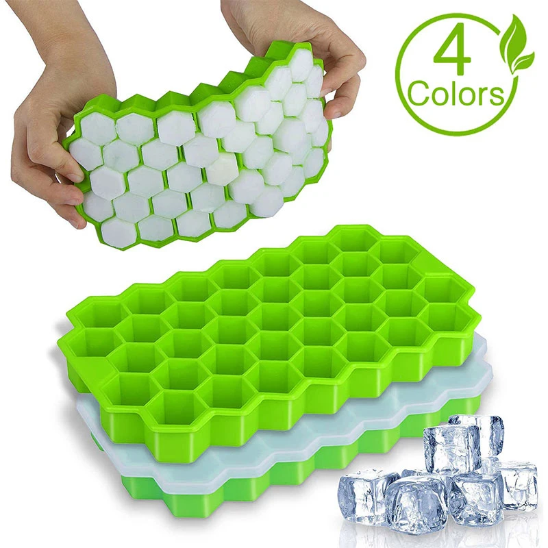 Features 4Easy-Release Silicone Honeycomb Ice Cube Molds Tray