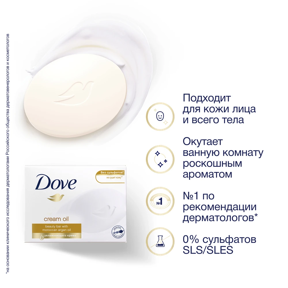 - Бережное очищение без сульфатов (без SLES/SLS) - Формула интенсивного питательного ухода с аргановым маслом - Дерматологически протестировано- Не тестируется на животных во всём мире Кусковое крем-мыло бессульфатное Dove Питательный уход с драгоценными маслами для лица, рук и тела дарит коже интенсивное увлажнение и питательный уход – благодаря особой формуле. Оно питает кожу во время процедуры очищения и делает ее гладкой и нежной, как шелк.Твёрдое крем-мыло Dove на 1/4 состоит из увлажняющего крема и содержит марокканское масло арганы. Оно бережно очищает вашу кожу и заботится о ней, оставляя ее гладкой и нежной и надежно защищая от сухости.Средство дерматологически протестировано! Dove не тестируется на животных во всем мире, поэтому вы можете заботиться о коже без вреда другим созданиям. Мы в Dove верим в Body Love — заботу о своем теле и проявление любви к нему несмотря ни на что! Поэтому, когда кожа нуждается в защите — не игнорируйте её, а подарите любовь и нежный уход Dove. В 2004 году Dove запустил проект повышения самооценки, в рамках которого помогает 250 миллионам девушек по всему миру стать увереннее в себе. Ознакомиться с миссией Dove по повышению самооценки можно на сайте dove.com/самооценка.