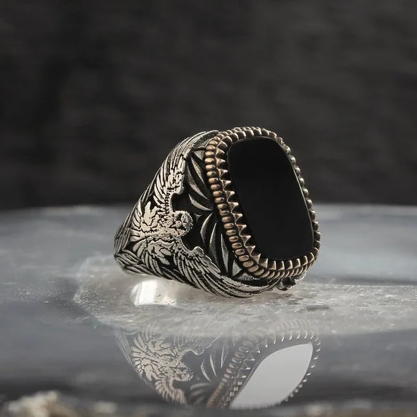 Оникс Традиционный турецкий 925 пробы серебра ручной работы перстни...