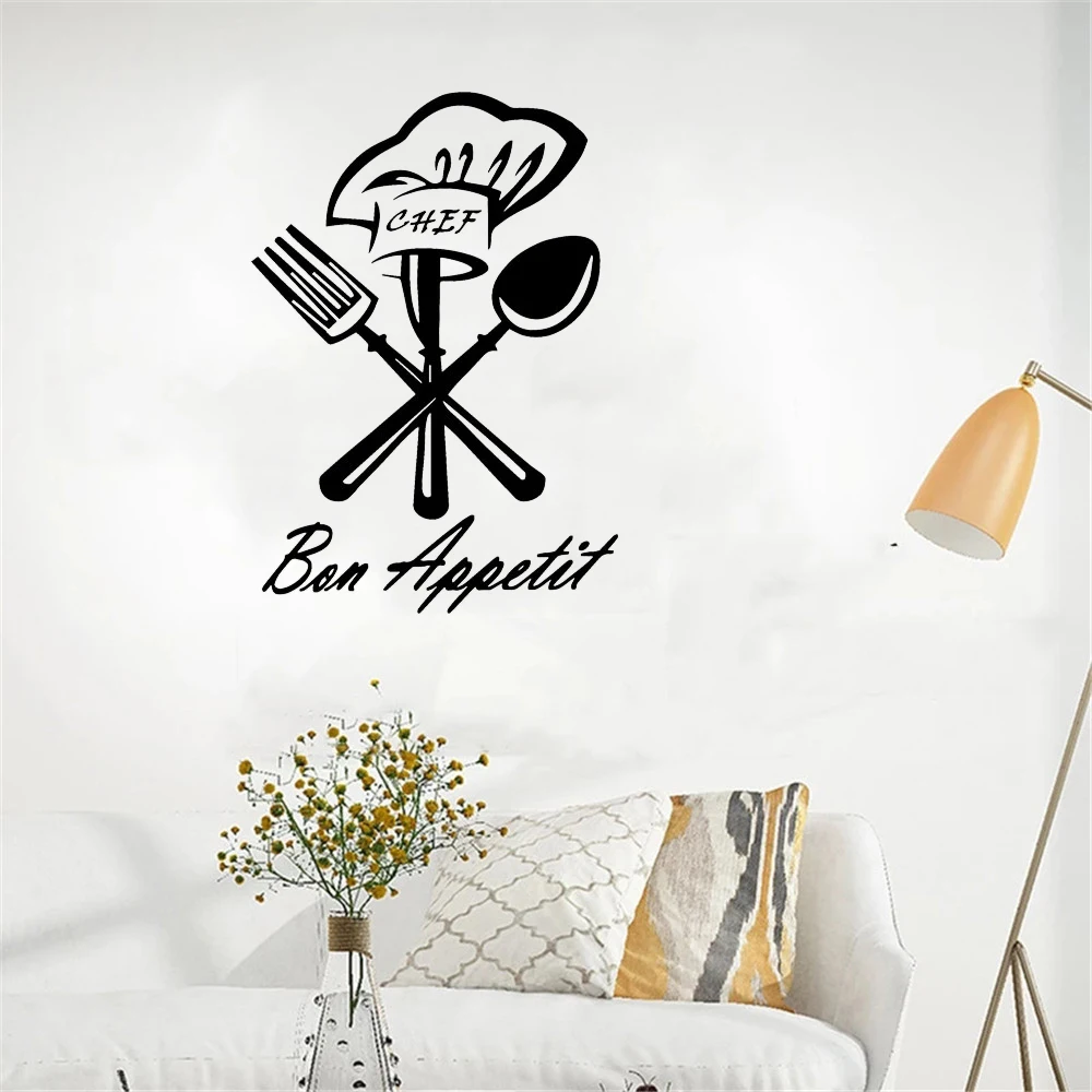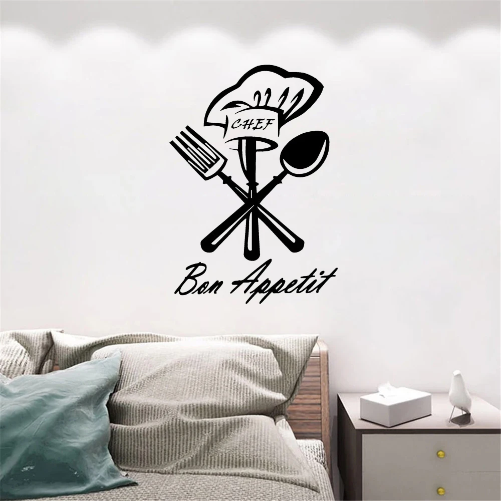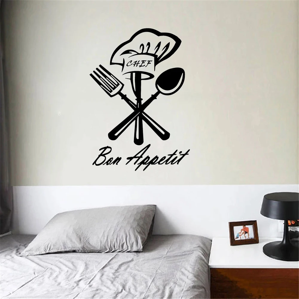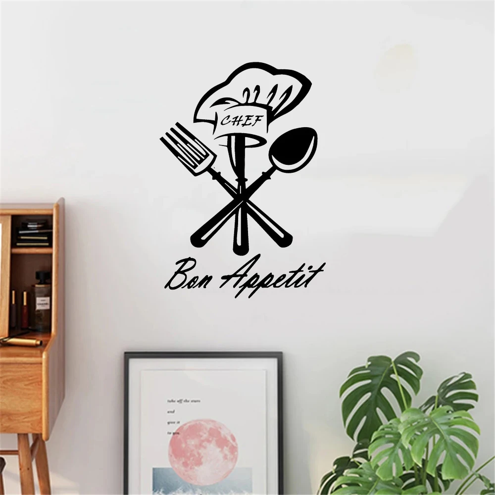 Кухонная виниловая настенная наклейка Chef Bon, дизайн интерьера кафе ресторана, декоративная посуда, нож, вилка, наклейки, фрески