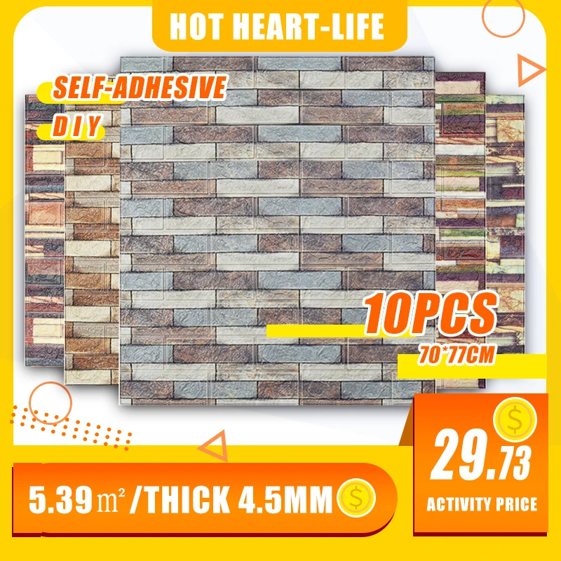 10 шт., 3D стикер на стену, самоклеящаяся панель, обои для гостиной, кирпичная наклейка, s, спальня, детская комната, бумаги, сделай сам, домашний Настенный декор