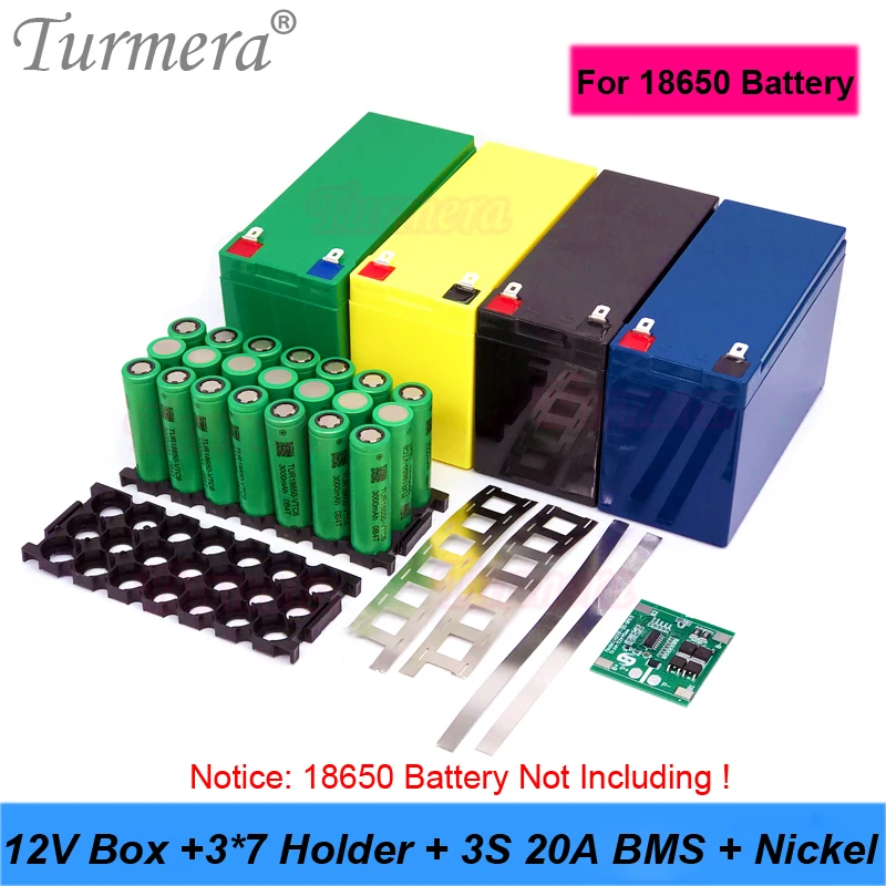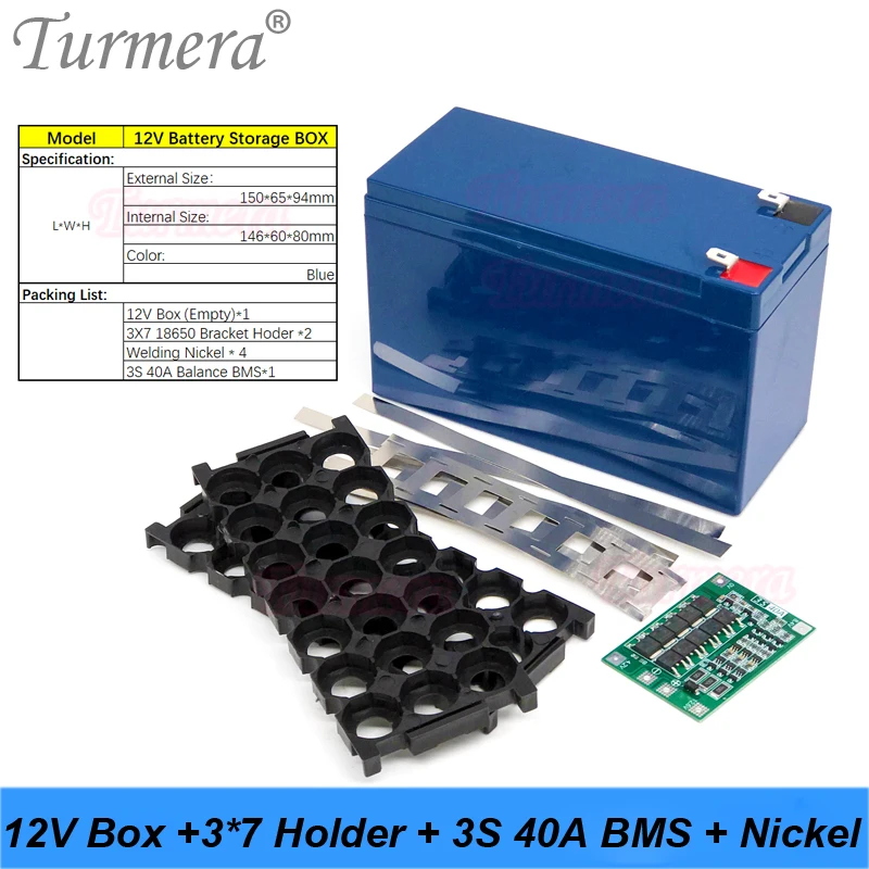 Коробка для хранения аккумуляторов Turmera, 12 В, от 7 Ач до 21 Ач, 3X7, 18650, 3S, 40A, BMS, сменный никель для свинцово-кислотного аккумулятора мотоцикла