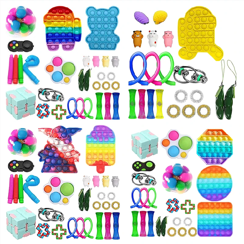 Набор сенсорных игрушек для снятия стресса, сенсорные игрушки с нажимным пузырьком для детей и взрослых