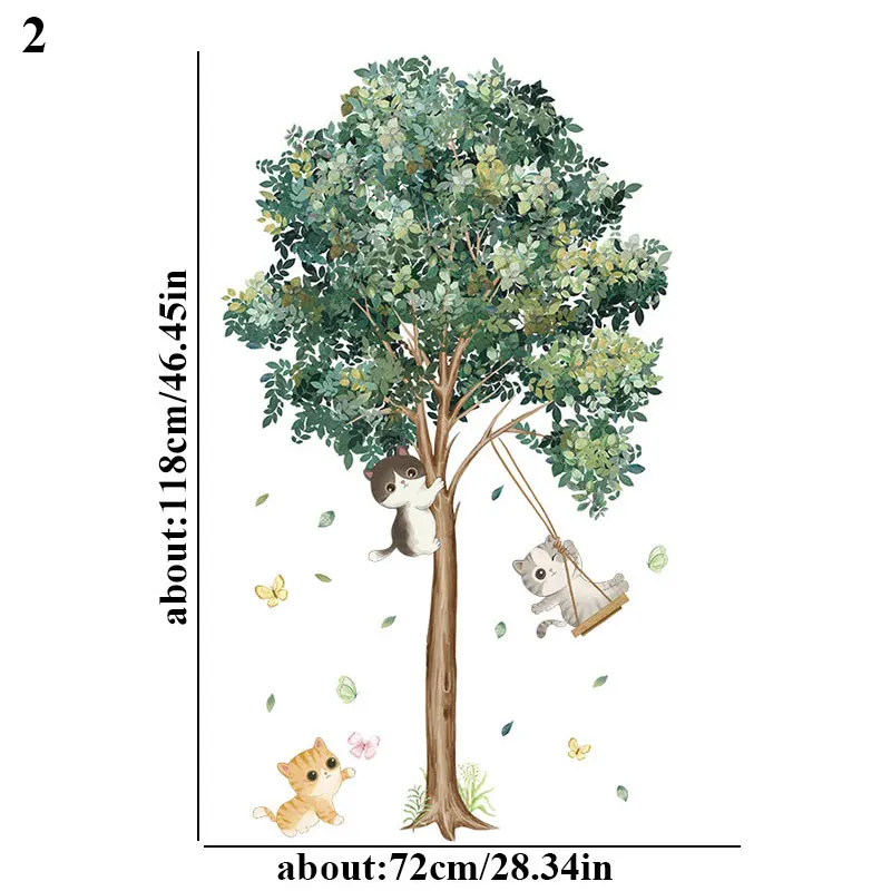 Растение настенный наклейки, ПВХ материал, водонепроницаемый и пыленепроницаемый. Есть зеленые деревья, милые кошки, птицы, колокольчики ветра, на наклейках.