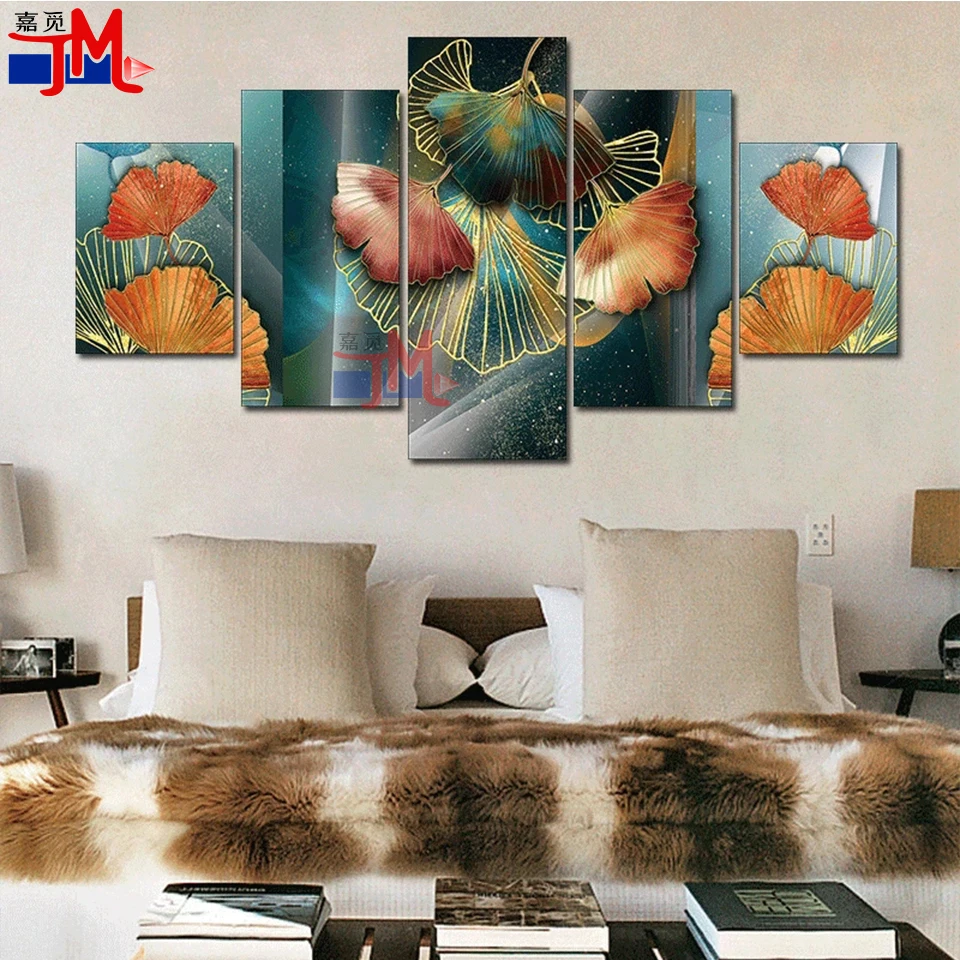 5 шт. гинкго лист алмазная живопись Современная Простота стены искусства Алмазная вышивка мозаика вышивка крестиком Стразы квадратные круглые
