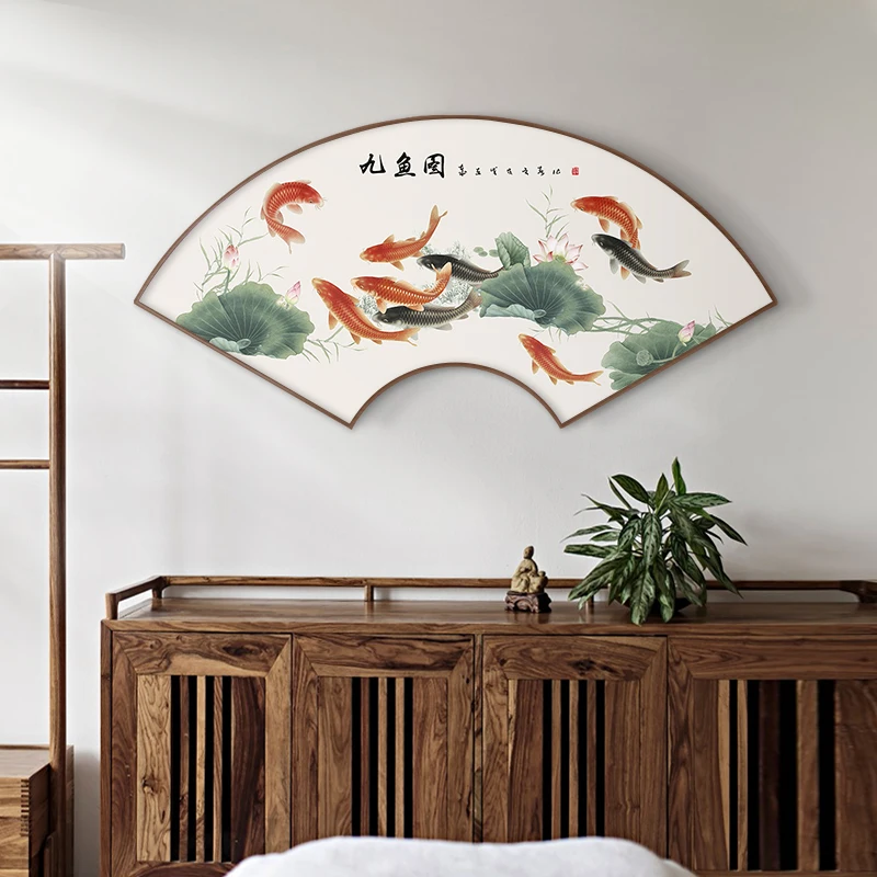 Картина в китайском стиле, с изображением девять рыб, карпа, постер для украшения гостиной, дома, офиса, настенная живопись