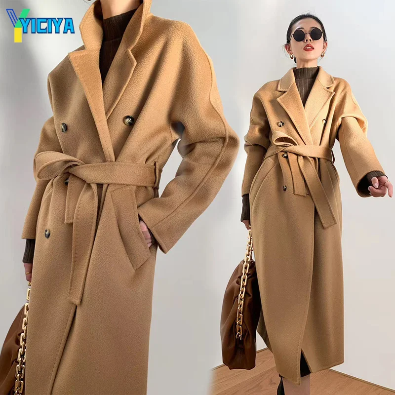 YICIYA Max зимнее длинное пальто, Женское шерстяное пальто, женская куртка, кашемировый Женский Осенний двубортный Тренч