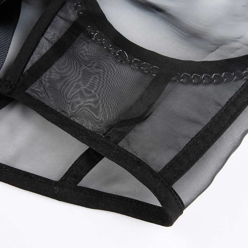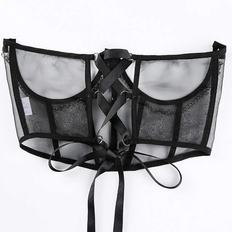 Женский сетчатый укороченный корсет с металлической цепочкой