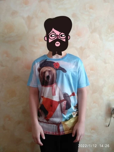 Выше всяких похвал ,майка супер ,принт четкий и яркий с двух сторон майки.Мишка и на спине. Ткань мякгая,как сейчас говорят бамбук. Ей нет сноса,отлично стирается ,сохнет быстро. Доставка -спасибо продавцу ,отправил в день оплаты,на 19день забрали на почте. Рекомендую продавца и товар однозначно Размерная сетка полностью соответствует