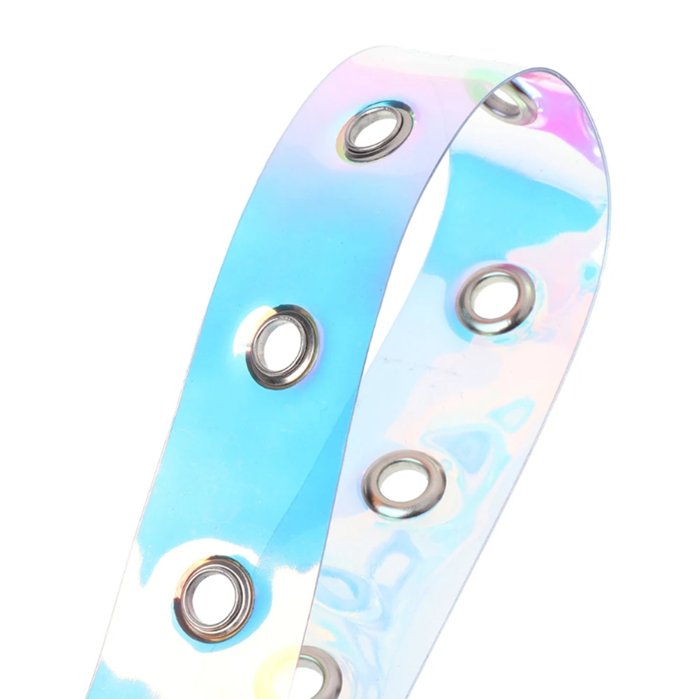 Новинка 2021, Женский поясной ремень, лазерная Радужная прозрачная металлическая пряжка, повседневное украшение, булавка, прозрачный Модный женский ремень