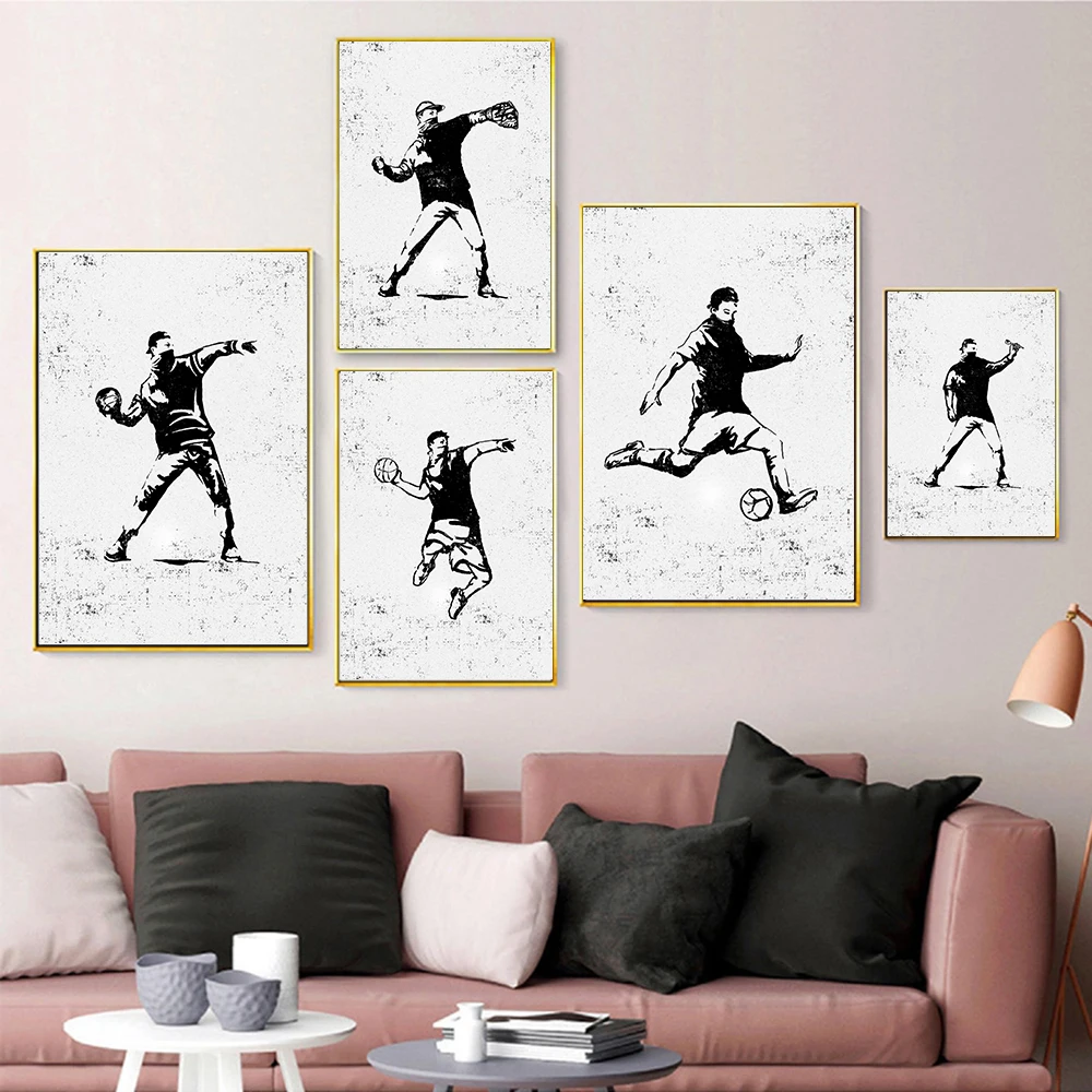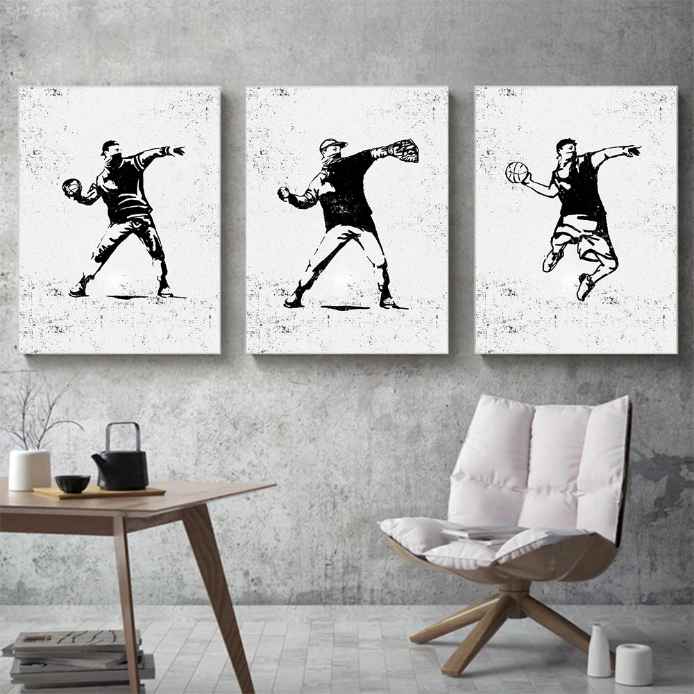 Баскетбольный Бейсбол Футбол гандбол Дротика постер печать Спорт гр...