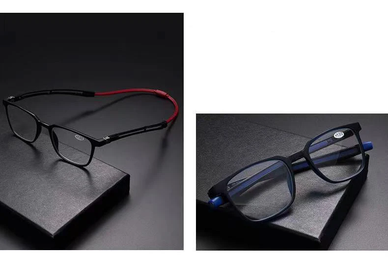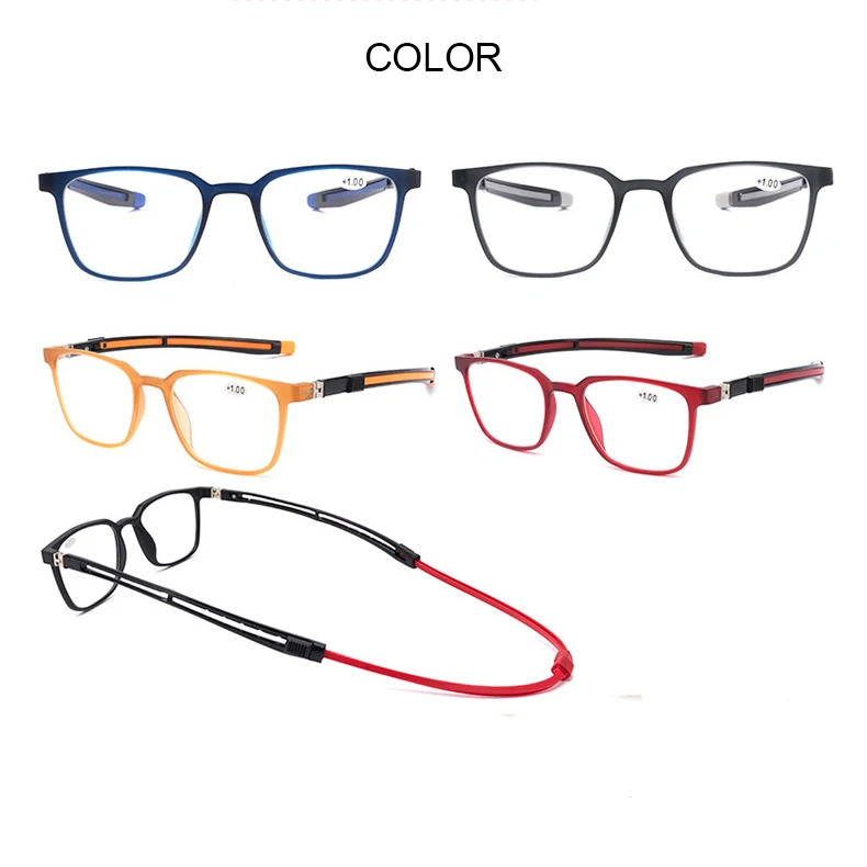 Мужские и женские очки для чтения, квадратные очки с подвесной шеей, оправа для очков Tr90, магнитные декоративные очки, с диоптриями + 4