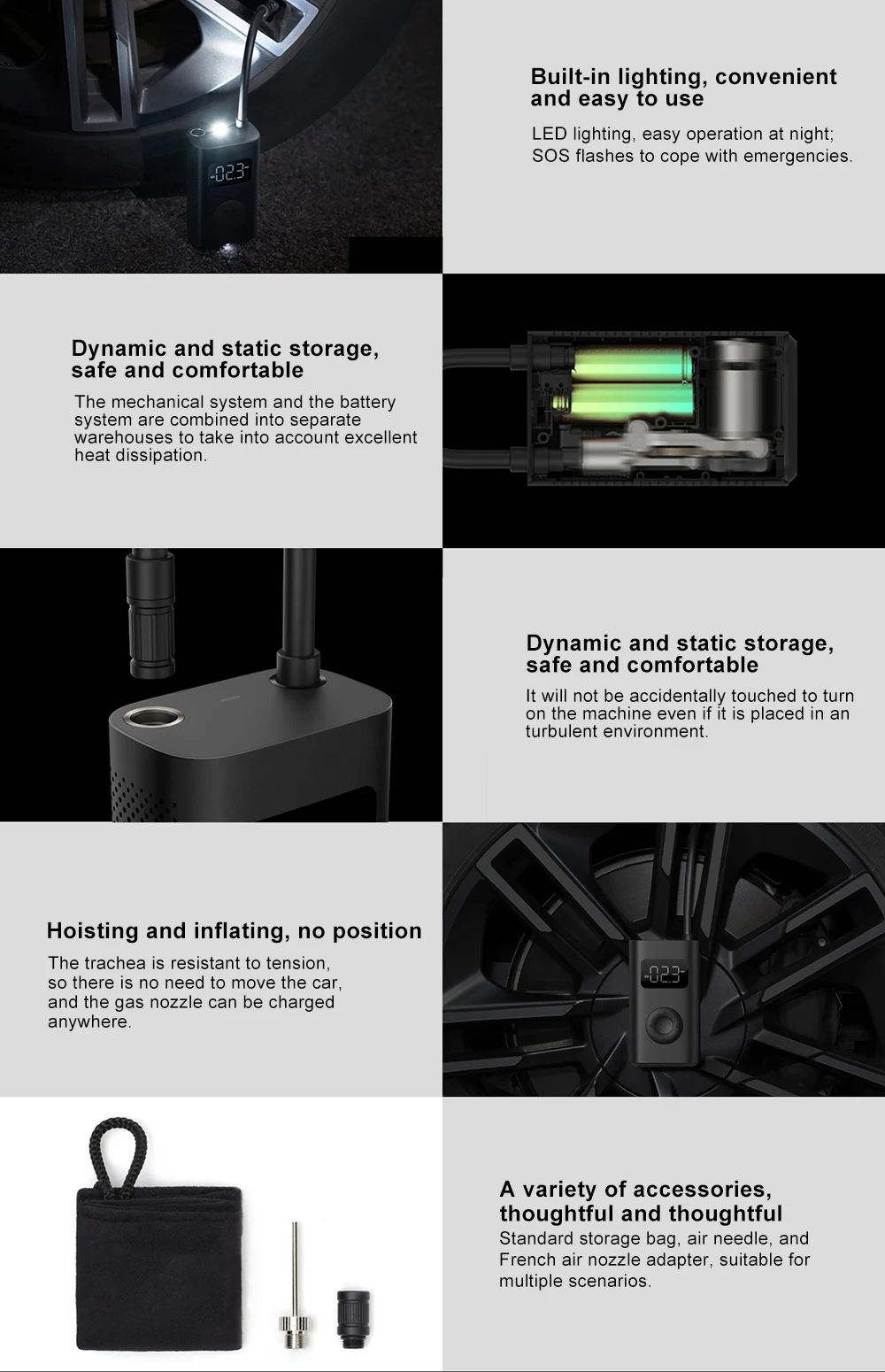 Электрический насос Xiaomi Mijia, портативный воздушный насос 1s Mini LED, умный цифровой датчик давления для велосипеда, мотоцикла, автомобиля, шин, футбола