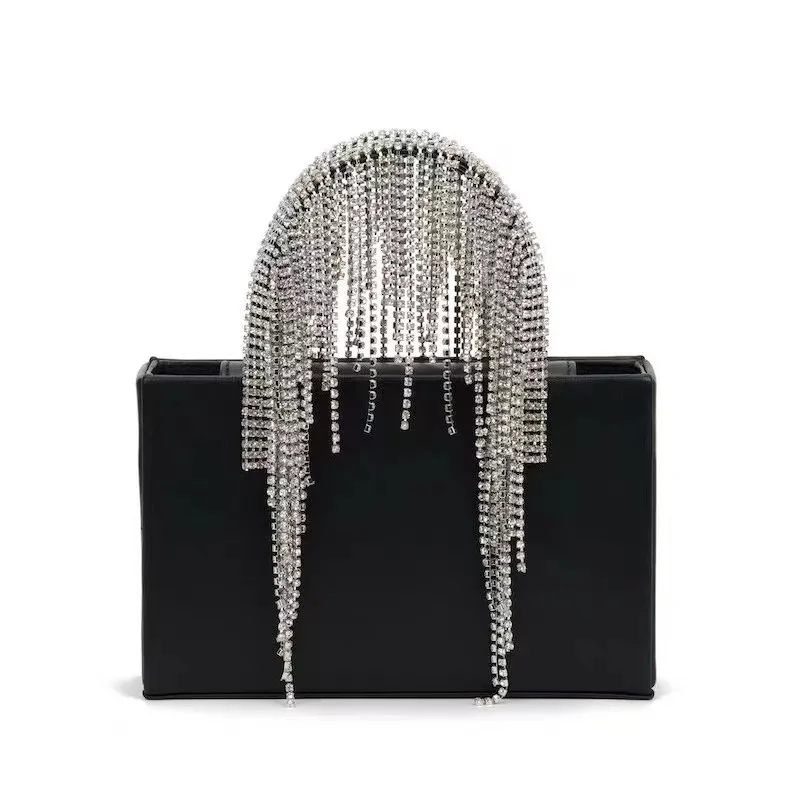 Роскошная сумка Стразы с бриллиантами, вечерняя сумочка с кисточками, женские квадратные сумки через плечо, вечерний клатч, черный кошелек