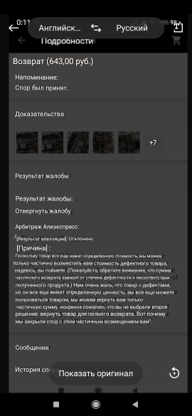 Прислал сгоревшую плату Я открыл спор ,продавец не отвечал на спор до последнего дня,а в последний момент написал что все проверенно перед отправкой и он ничего возвращать не будет Али экспресс предложили вернуть товар продавцу или возврат 640₽ Так же предложили вставить плату в рабочий комп и прислать им видео На плате короткое замыкание по питанию Прислал им видео и написал что с коротким замыканием нельзя включать Но у них уже вышло время отведенное на спор и доказательства ни кто не принял во внимание А продавец опять же в последний момент согласился на возврат 640₽ И спор закрыли Пусть этот сука продавец подавится Он падла на этих спорах собаку съел Защита Али экспресс полное дерьмо спор можно выиграть только на копеечных заказах когда продавец вообще не отвечает А на дорогих всегда в пользу продавца