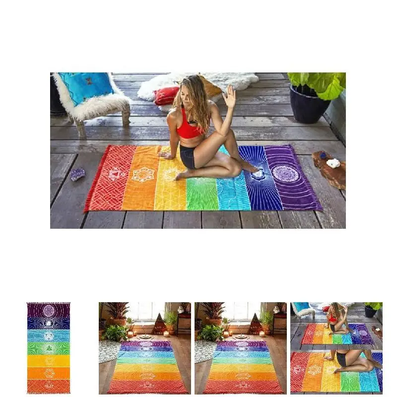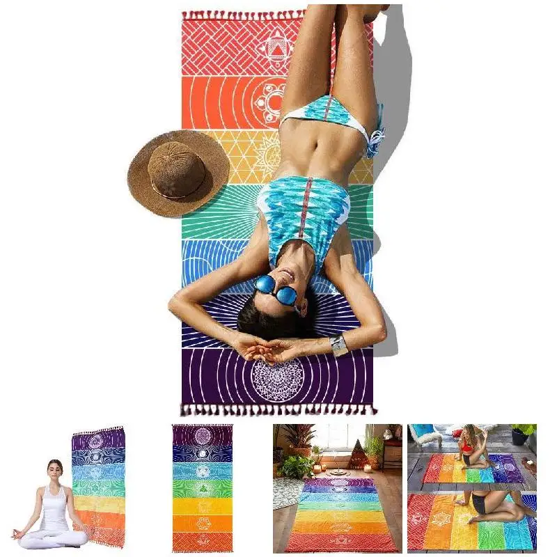 Женский Радужный пляжный коврик в стиле бохо, одеяло с мандалой, полосатый настенный подвесной Коврик для йоги, Прямая поставка