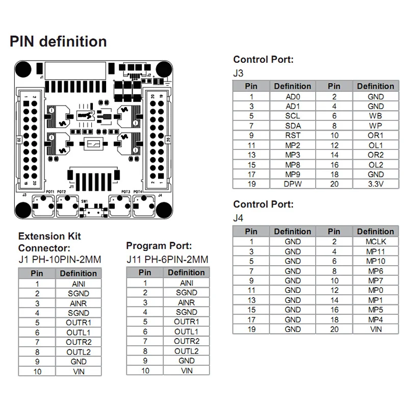 POT1 усиление басовPOT2 частота обрезания басовPOT3 высокая частота отключенияВысокое Усиление POT4