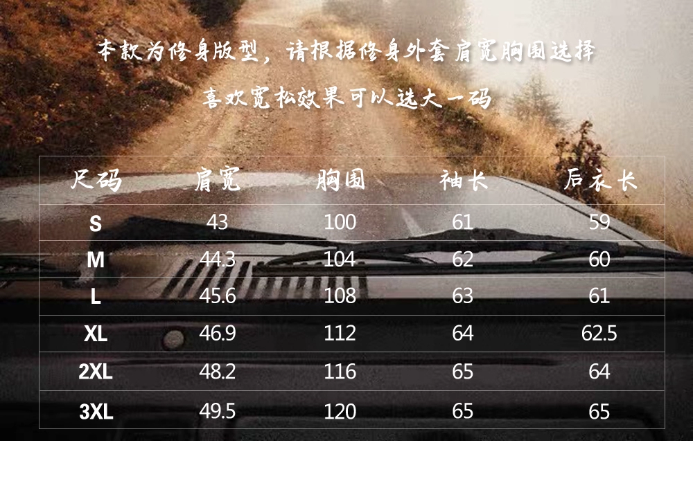 Пожалуйста, проверьте таблицу размеров и измерьте вашу куртку, как показано ниже.