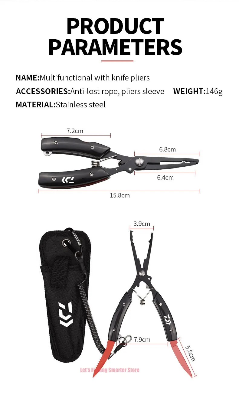 Новые портативные складные рыболовные плоскогубцы DAIWA, ножницы из нержавеющей стали, резак для лески, удаление крючка, инструменты для рыбалки DAIWA, плоскогубцы