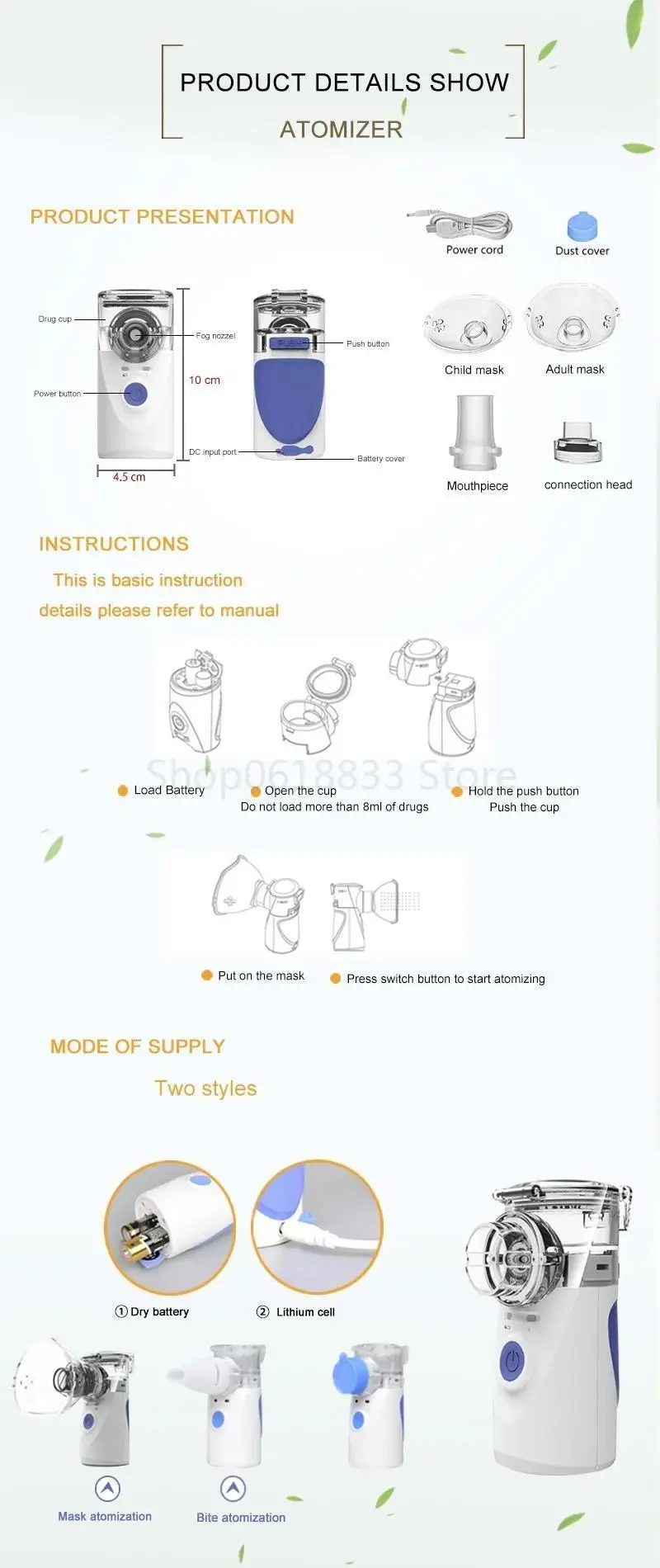 Мини-портативный ультразвуковой ингалятор, небулайзер, атомайзер, тихий с подзарядкой, ручной, для детей и взрослых, товары для медицинского ухода