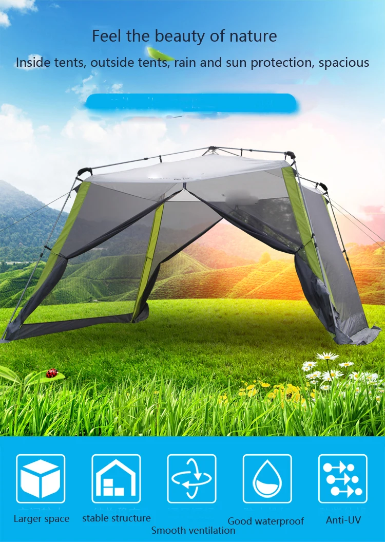 Уличный тент для барбекю, кемпинга, самостоятельного вождения, Солнцезащитный пляжный тент для множества человек, непромокаемый комар, автоматическая беседка, палатка