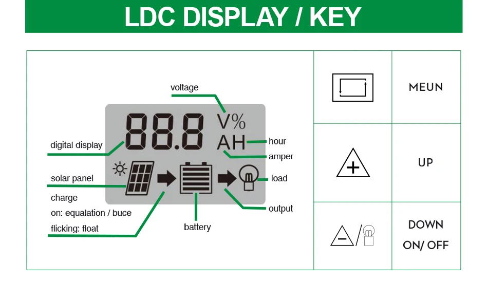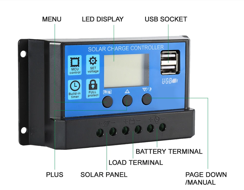 Это новый Солнечный контроллер, он может полностью удовлетворить ваши требования к домашней фотоэлектрической системе (включая систему домашнего освещения). Он может recongize 12V и 24V свинцово-кислотный, гелевый Аккумулятор автоматически
