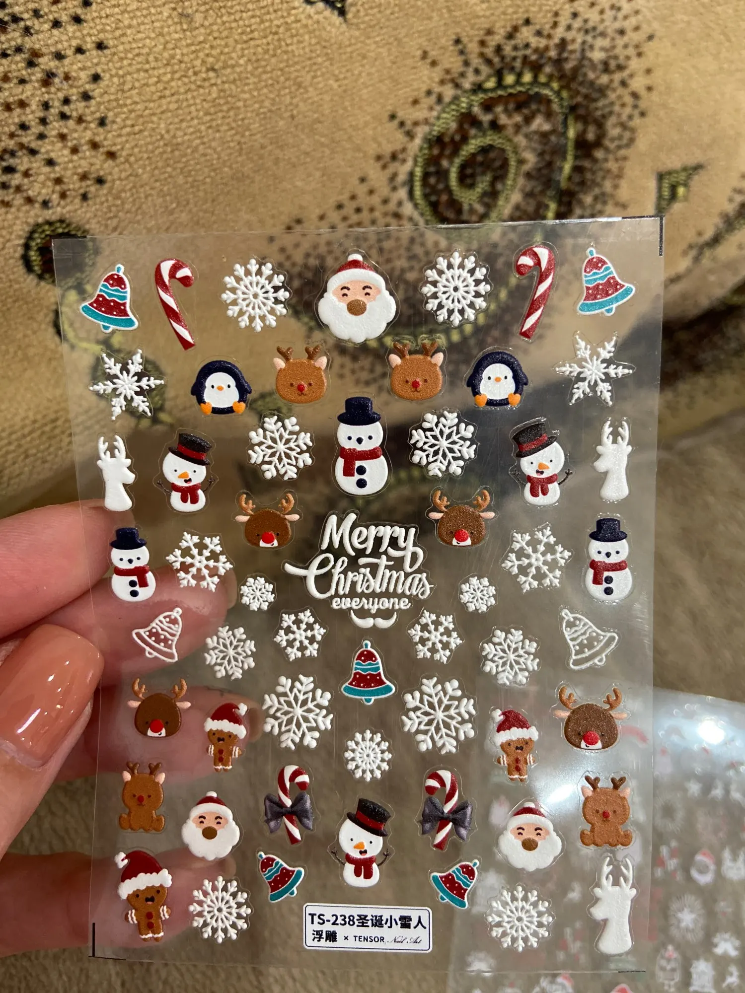 Новинка Рождественская наклейка для ногтей снежинка снеговик трехмерная матовая и тонкая рельефная 5D наклейка для дизайна ногтей