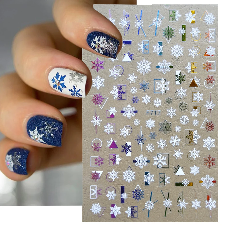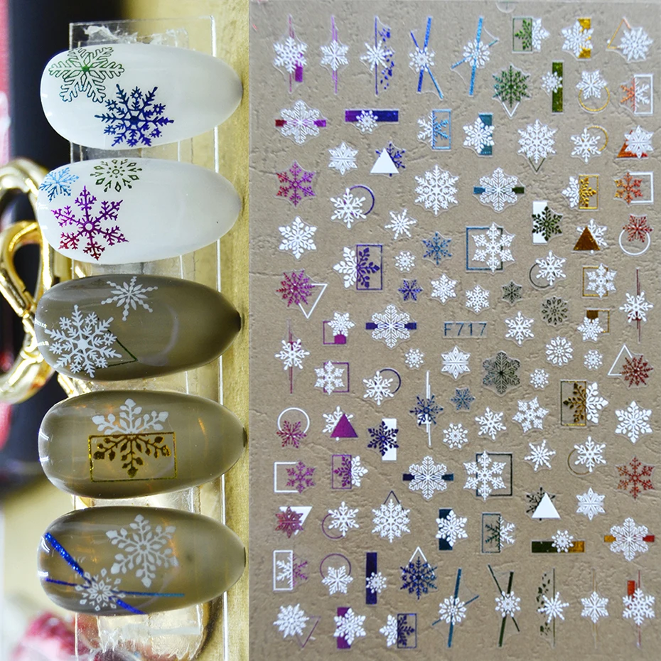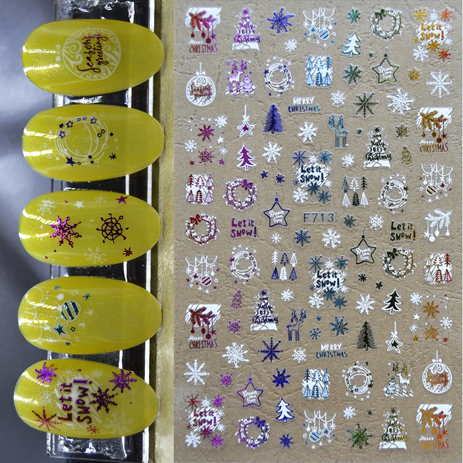 1 шт. зимние рождественские наклейки для ногтей снежинки геометрические голографические слайдеры переводные наклейки украшения для девочек LAF712-719