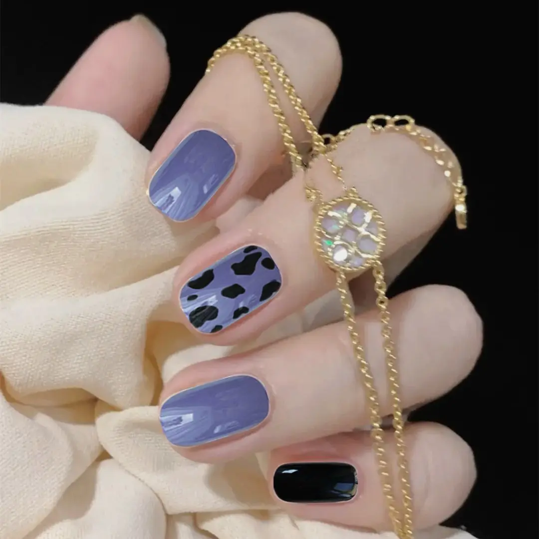 24 шт. Модные леопардовые накладные ногти с круглой головкой смешан...