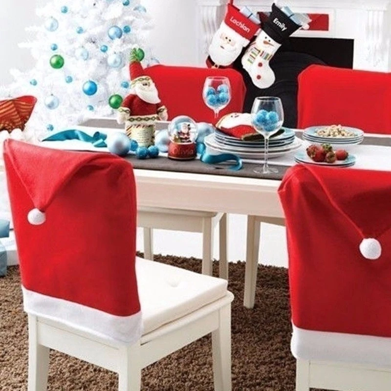 1 шт. красная шляпа, задняя крышка стула, Санта-Клаус, обеденный ст...