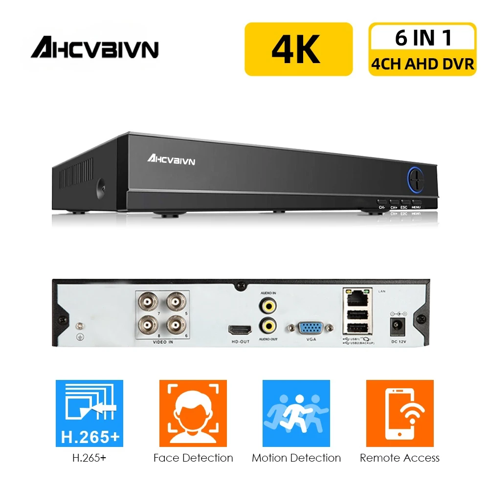 4K 4-канальный Гибридный DVR H.265 8MP 8CH CCTV видео наблюдения DVR рекордер AHD 4CH видео камера рекордер для CCTV камеры комплект 5MP