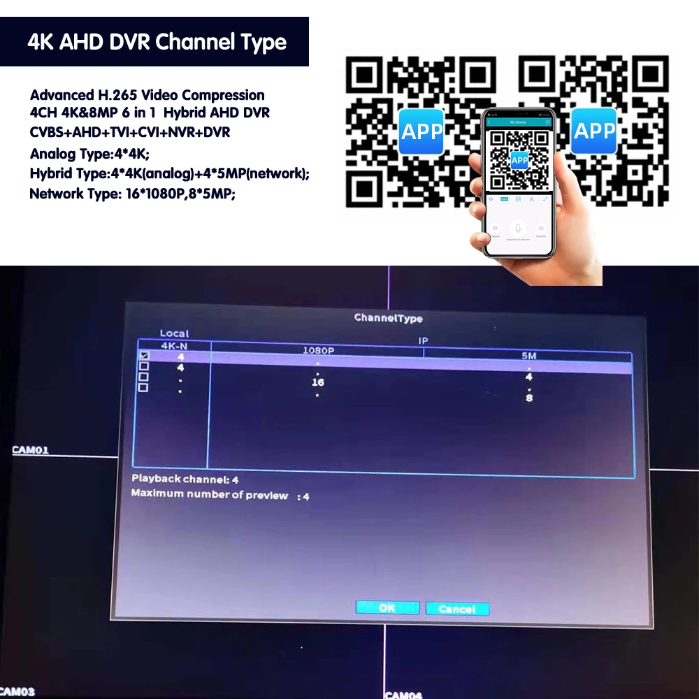 4K 4-канальный Гибридный видеорегистратор H.265 8MP 8CH CCTV видеонаблюдение DVR рекордер AHD 4CH видеокамера рекордер для CCTV камеры комплект 5MP