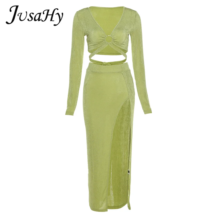 Женский комплект из двух предметов, Зеленый Топ с длинным рукавом и...
