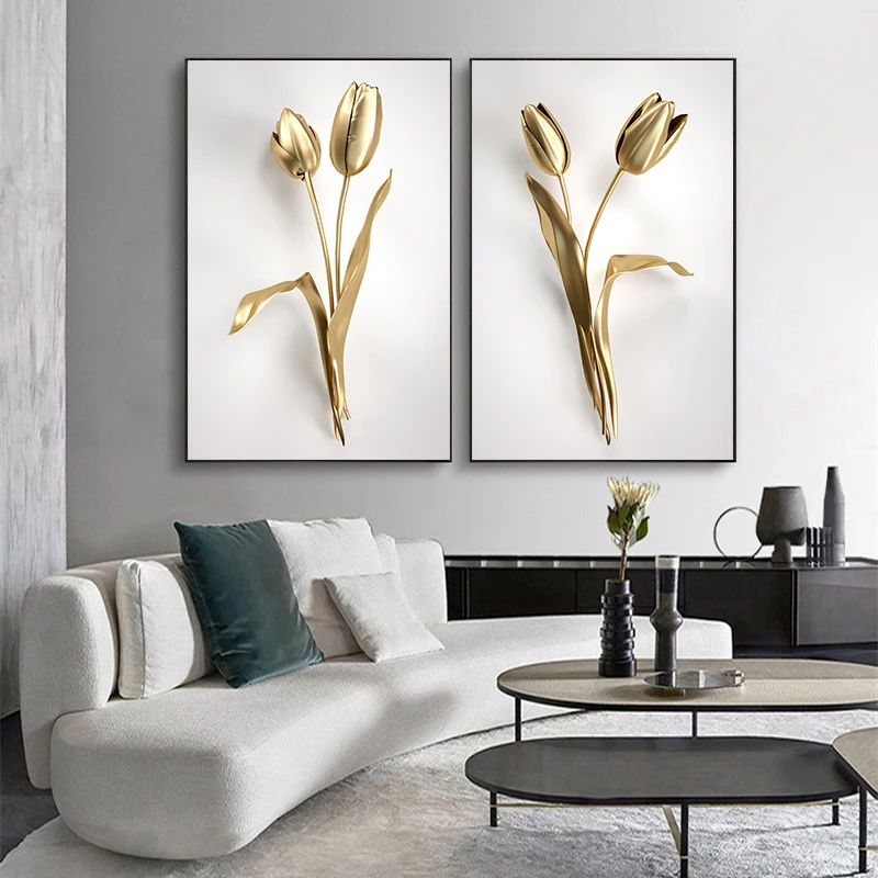 Современный простой золотой трехмерный цветочный постер, печать на ...