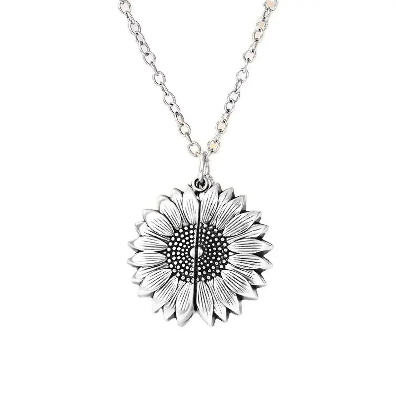 Ожерелье с подвеской в виде подсолнуха, с надписью и гравировкой