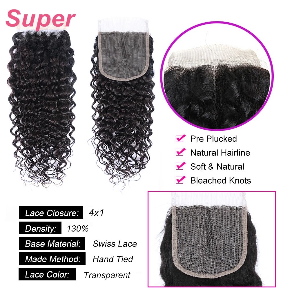 HD Прозрачная глубокая волна 4X1 кружевная застежка бразильские Реми человеческие волосы кружевная застежка натуральные черные предварительно выщипанные Детские волосы