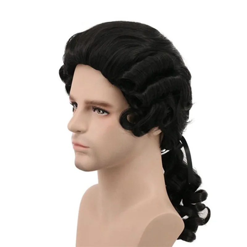 Серый, белый, черный, адвокатский судейский, барочный, кудрявый мужской костюм, парики, роскошный, история, Хэллоуин, длинный, синтетический, косплей парик + парик, шапка