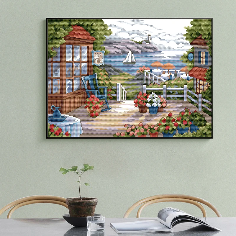 Комплект для вышивки крестиком Joy Sunday, террасы с цветущими цветами, 11CT 14CT, печать, штампованная ткань, Декор, Набор для вышивки