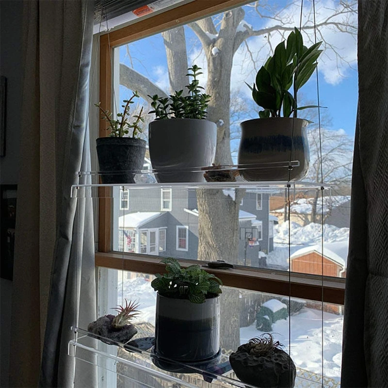 Акриловая полка для растений на окно, прозрачная подвесная настенная полка для цветочного горшка