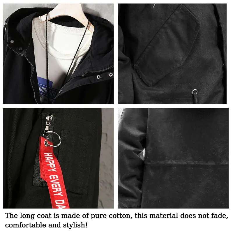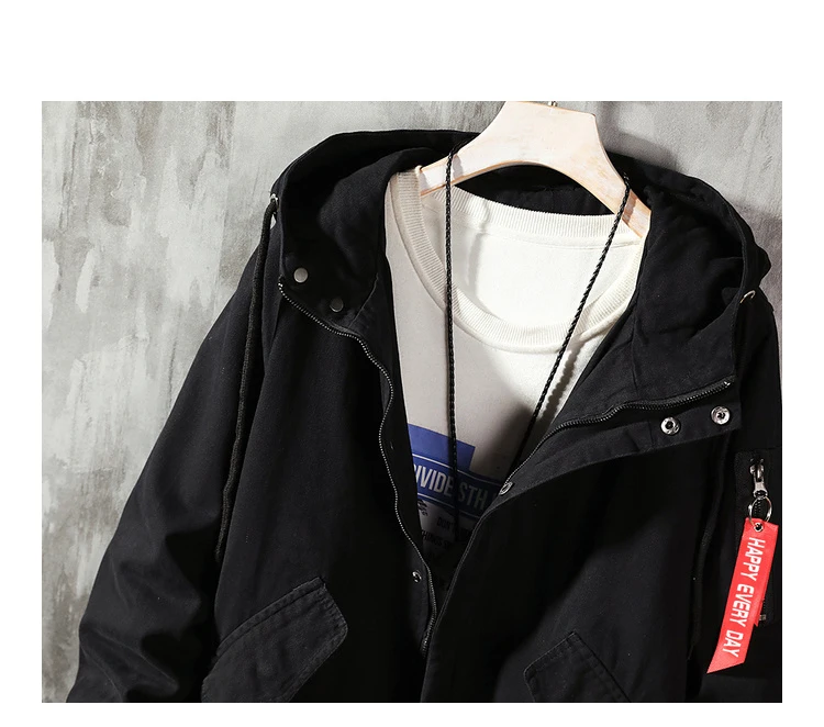 Мужской Хлопковый тренчкот на молнии с капюшоном и принтом Токийский рественз