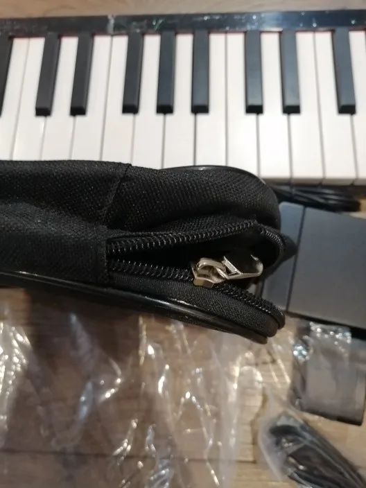 Электронное пианино пришло быстро. Курьер принёс домой. Всё соответствует описанию. Пианино пришло заряженным. Нажатие клавиш легче, чем на настоящем. Для учёбы подойдёт. У сумки на замке сломано несколько зубчиков, но это в начале молнии, я это место просто зашью.