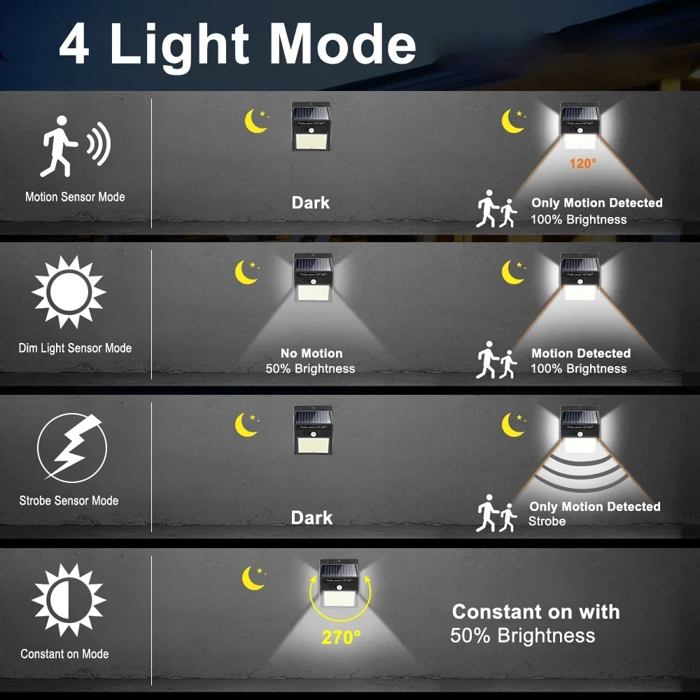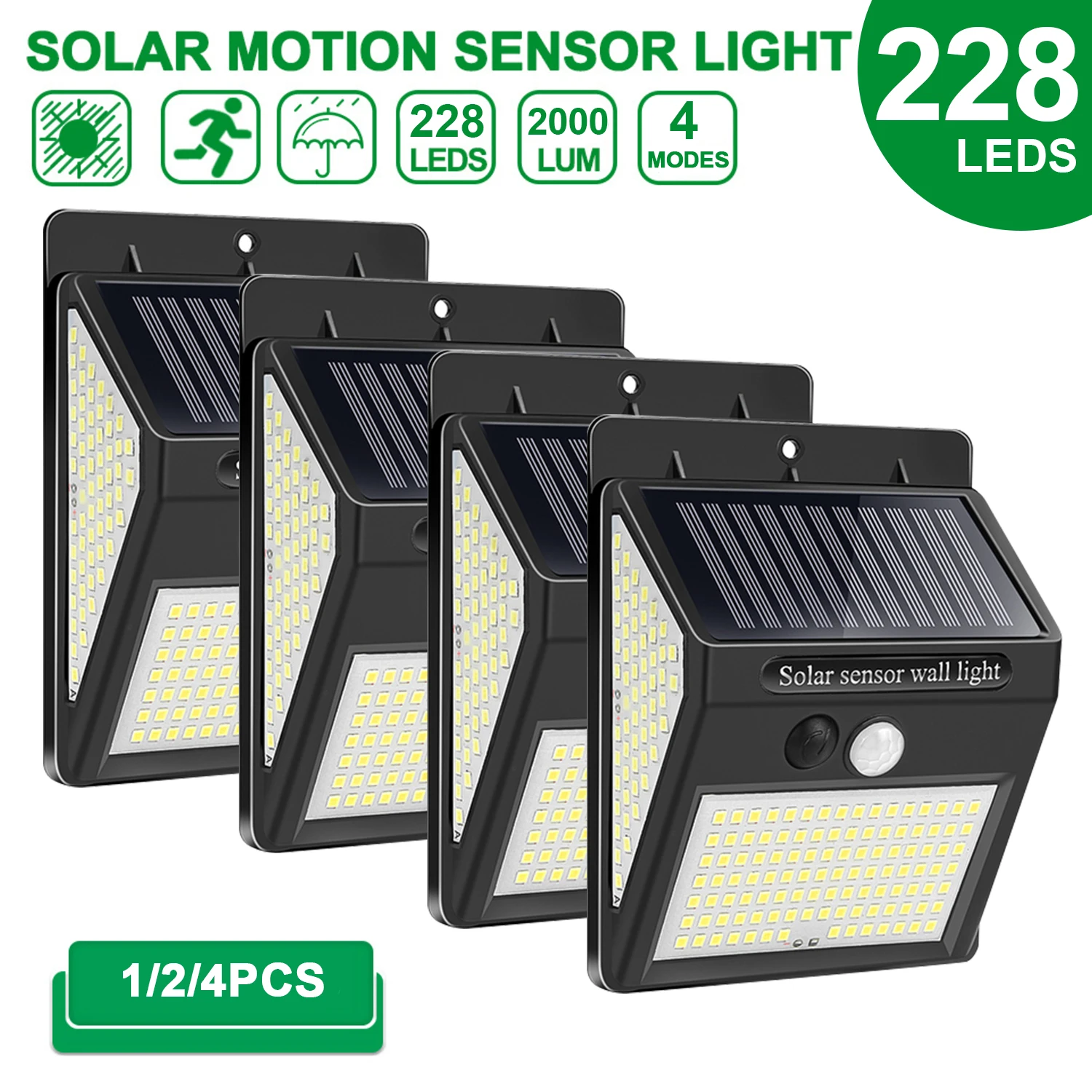 Уличный светильник на солнечной батарее, 228, 144, 100 светодиодов, настенный светильник с пассивным ИК датчиком движения, водонепроницаемый светильник на солнечной батарее для украшения сада