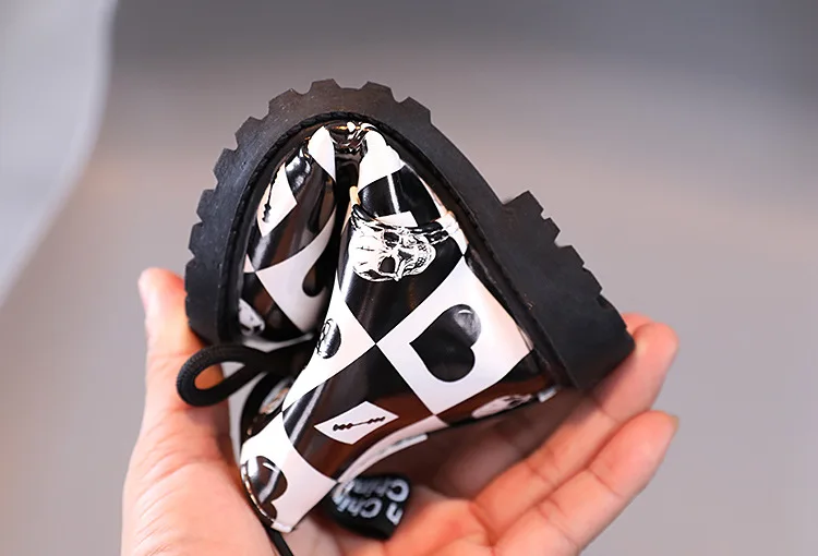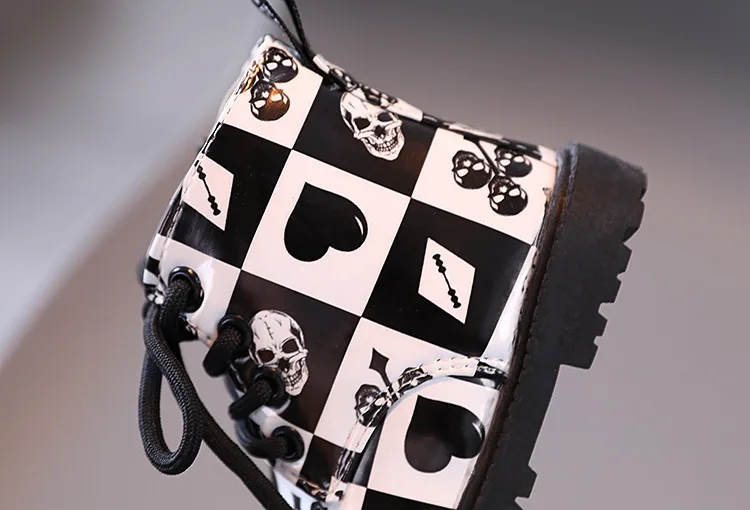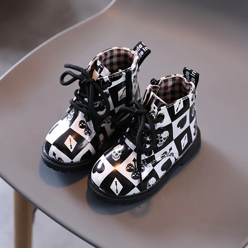 Ковбойские ботинки для детей, модные хлопковые ботинки для мальчиков, детская резиновая подошва в виде черепа для сохранения тепла, Нескользящие, водонепроницаемые