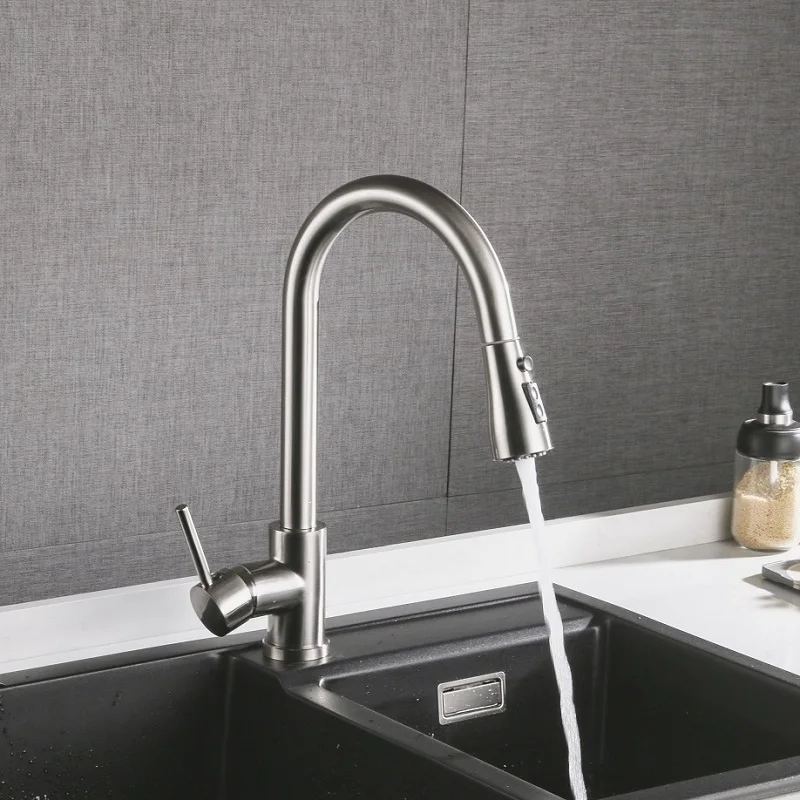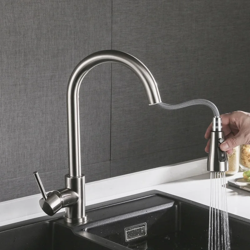 Кухонный кран из матового никеля одно отверстие вытащить носик горя...