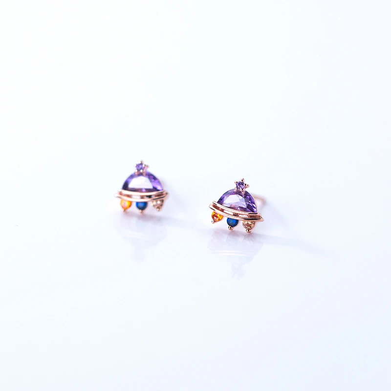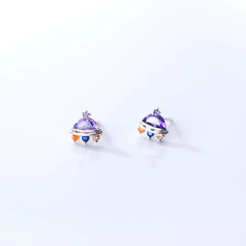 Название продукта:Маленькие серьги с милым космическим кораблем и цирконием
