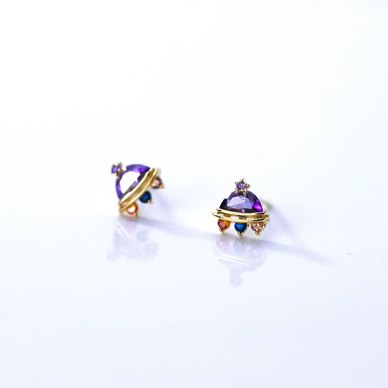 Женские серьги-гвоздики из серебра 925 пробы с радужным цирконием