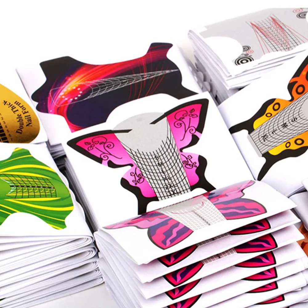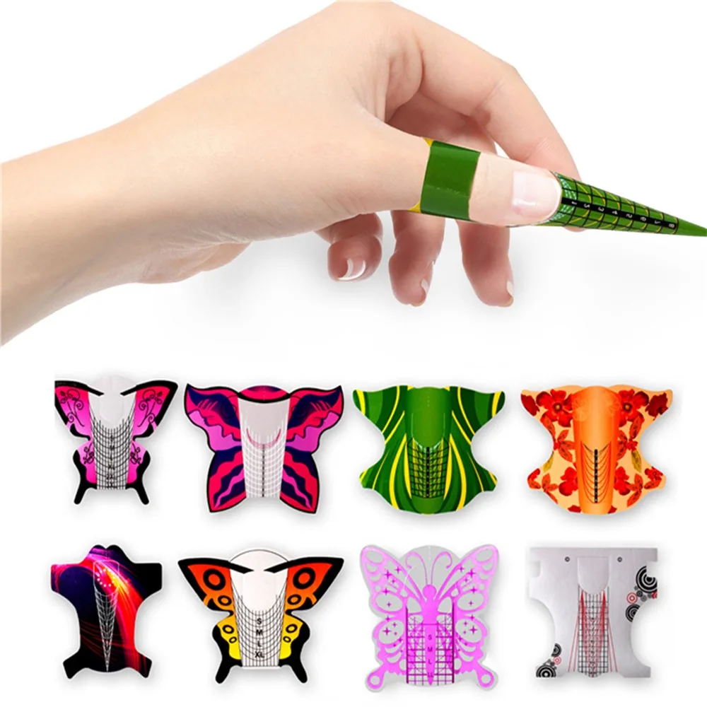 100 шт. формы для наращивания ногтей, наклейки, держатель для ногтей для акриловых типсов, форма для французского маникюра, инструменты для наращивания, лазерная бабочка