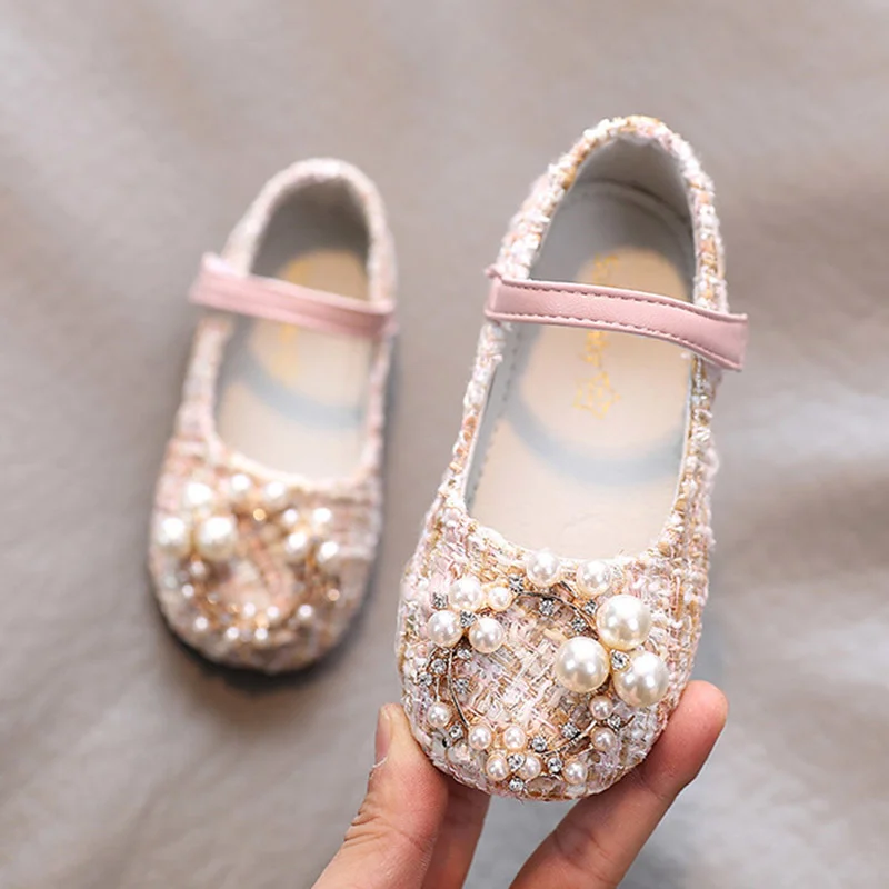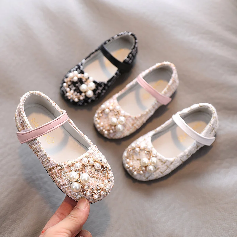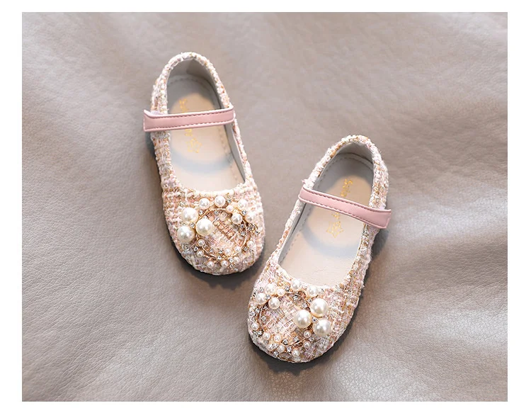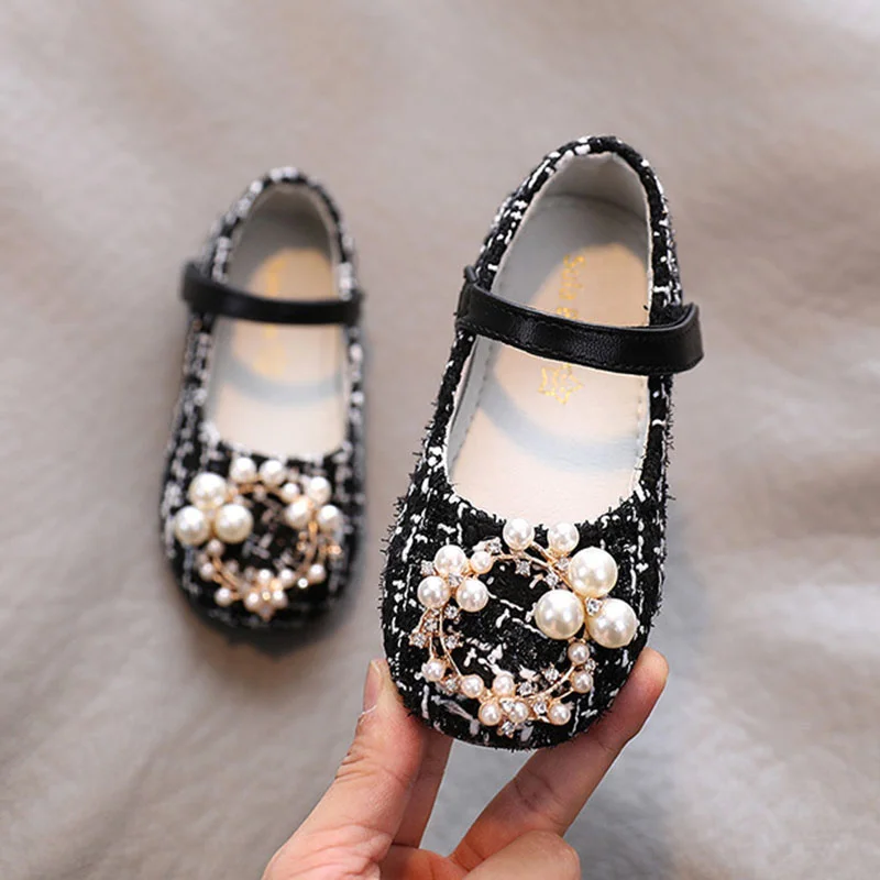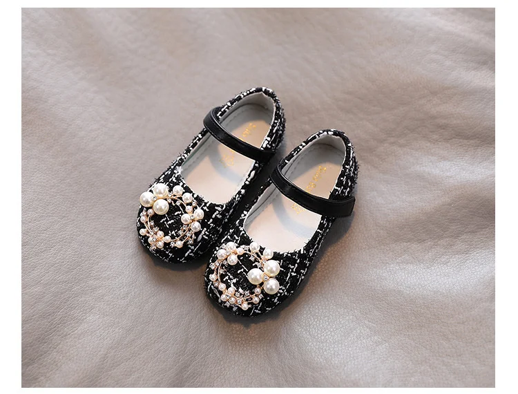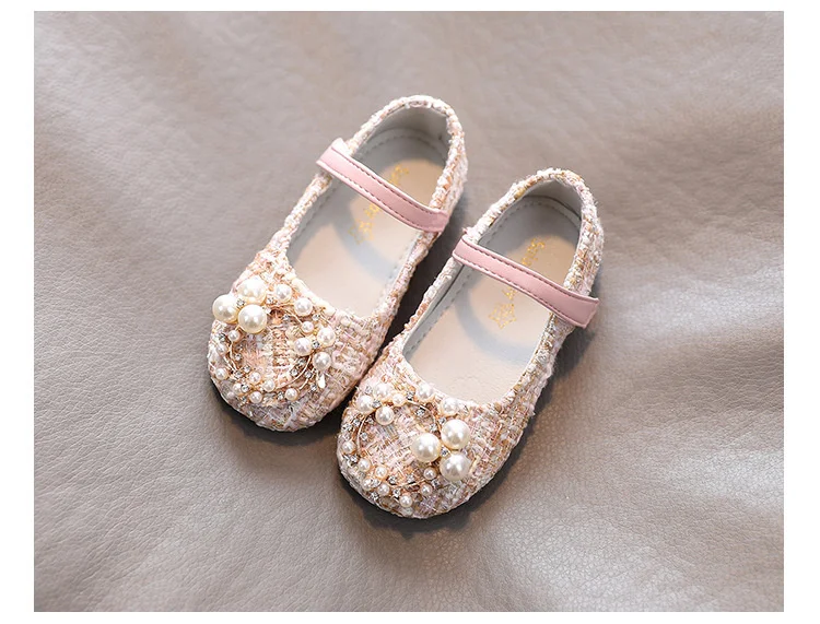 Туфли для девочек, с жемчугом, для принцессы, твидовые, Детские Туф...