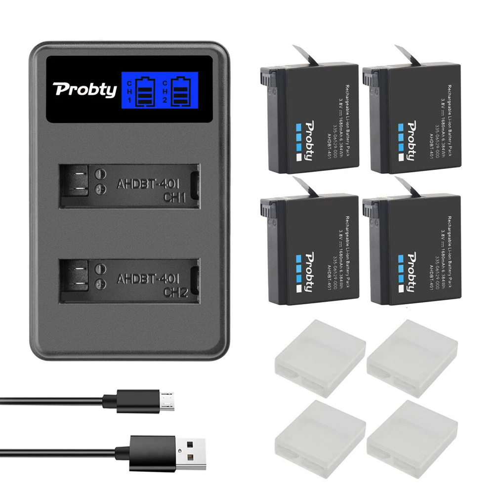 4 шт. 1680 мАч, AHDBT-401 Батарея для экшн-Камеры Gopro Hero 4 Бата...